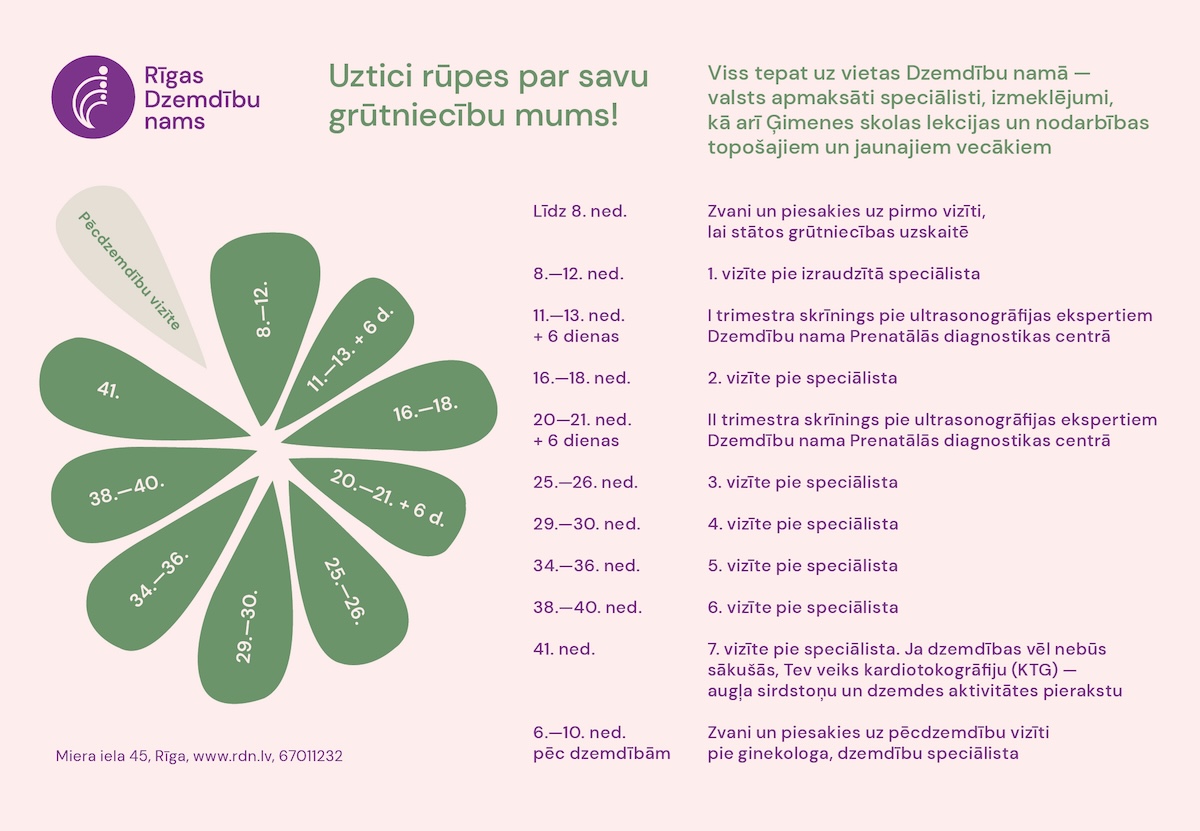 Rīgas Dzemdību namā grūtnieces aprūpē vecmāte vai ginekologs, dzemdību speciālists. Nodrošinām valsts apmaksātu grūtniecības uzraudzību.